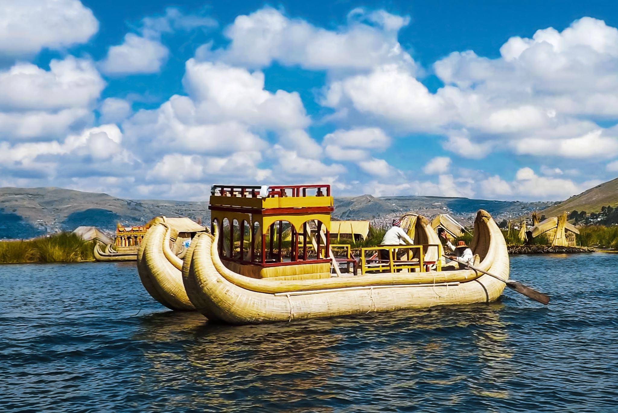 Los Uros son una comunidad originaria muy antigua, conformada por más de 40 islas, las que son construidas con cañas de totora por sus propios habitantes, las mismas son utilizadas para la construcción de sus viviendas, embarcaciones (balsas), combustible y como alimento para el consumo humano. En esta excursión se visita la isla principal y se recorre alrededor 2 o 3 islas durante 30 minutos cada una (con la opción de hacer el paseo en las típicas embarcaciones de Totora).